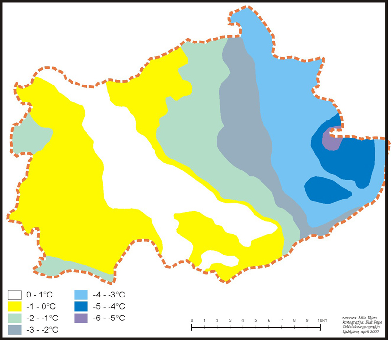 ºC (Klimatografija Slovenije, temperature 1961 – 1990, 1995).