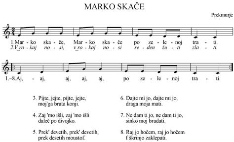Spodaj je besedilo pesmi in kratek opis pesmi. Mladinski pevski zbor OŠ Vič pa je izbrano pesem tudi posnel. Posnetek, katerega lahko poslušate v mp3 obliki, se nahaja pod opisom pesmi.