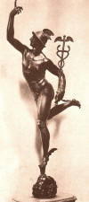 Hermes (Merkur), grško/rimski bog je znan kot sel bogov, s krilci na nogah in z glasniško (ali čarobno) palico, kaducejem; velja tudi za boga trgovcev, varuha poti in popotnikov, vodnika duš v podzemlje ter boga pisave in skrivnih znanj.