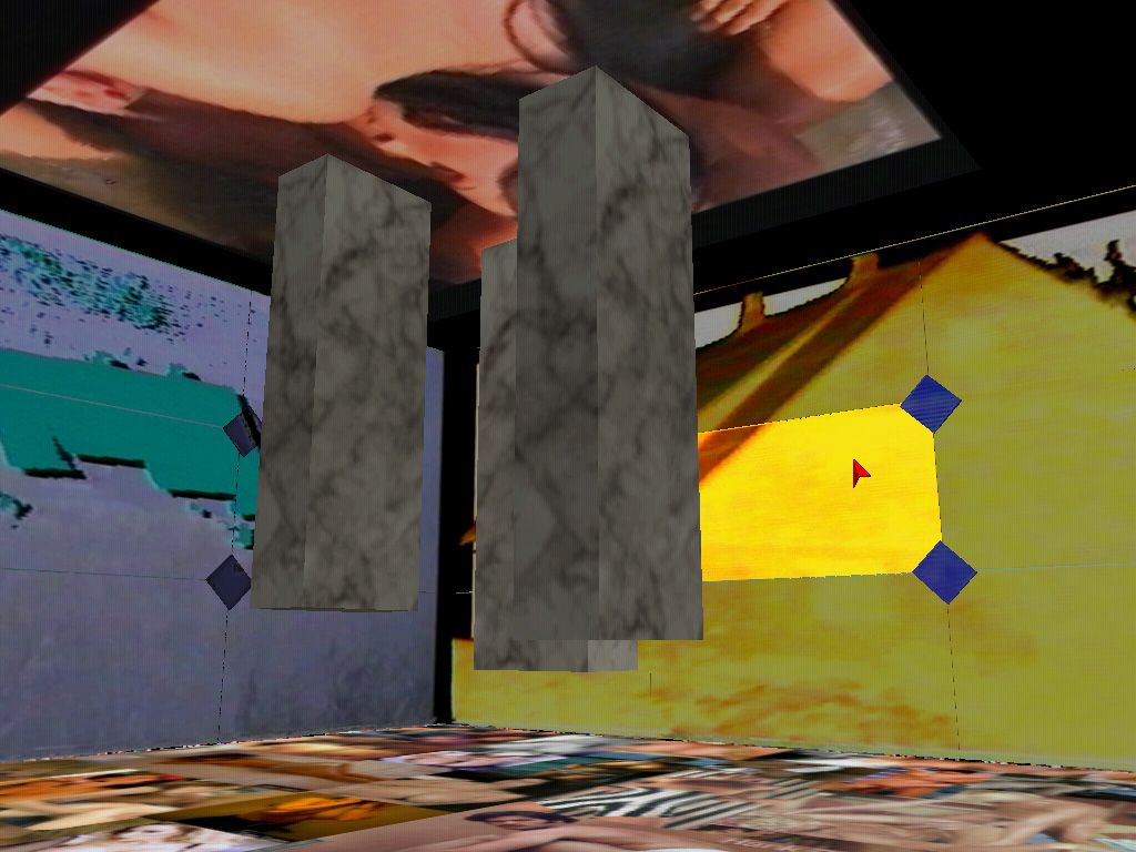 VideoSpace was created on the basis of three projects: Javornik (2001), R III (2002) and VSA (2003). These are autonomous artistic projects (that have been exhibited also separately), which should be conceived through the viewpoint of video-integrated media and conceptual art. Each of the three projects and of course their relationships (alliance) in VideoSpace are realised through multiple artistic media: as video tape, video installation and web site, in some cases also as an interactive CD-ROM (Javornik), traditional paintings acrylic on canvas (R III) and corporate identity (VSA). VideoSpace is realized on different levels, too: first as a conceptual diagram, than as an interactive CD-ROM with a virtual three-dimensional hyperspace and as a reduction of the CD-ROM version into the language of VRML three-dimensional net reality.