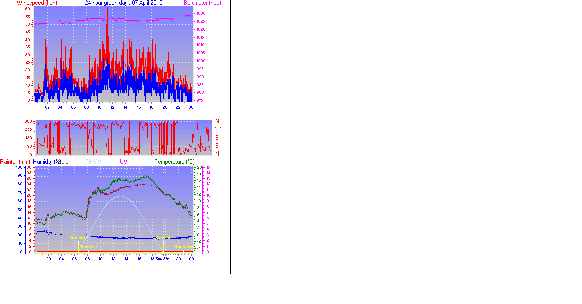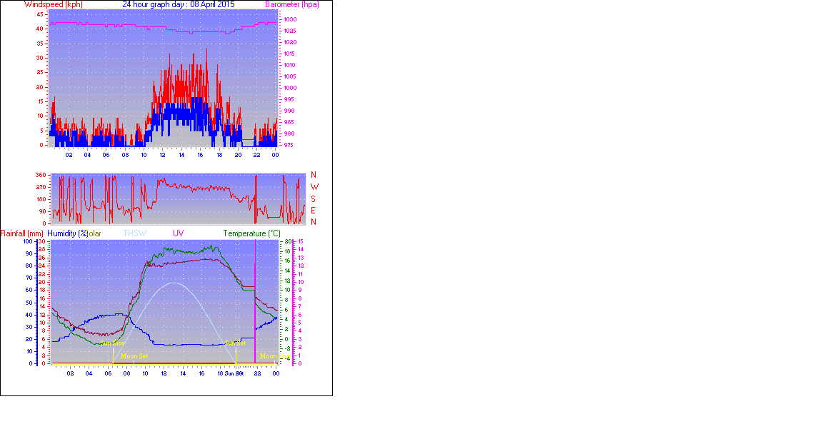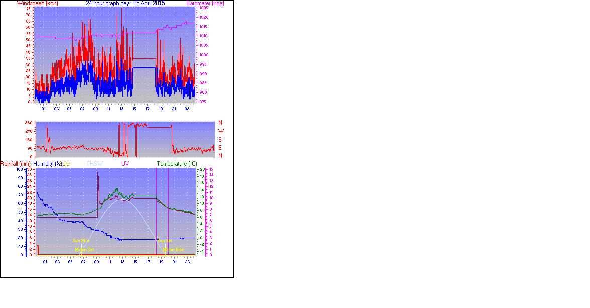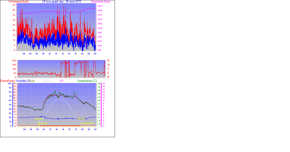 Maximum windspeed = 35.2 kmh from 00°( N ) on day 05 at time 13:02