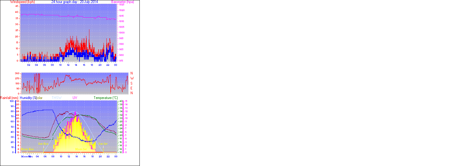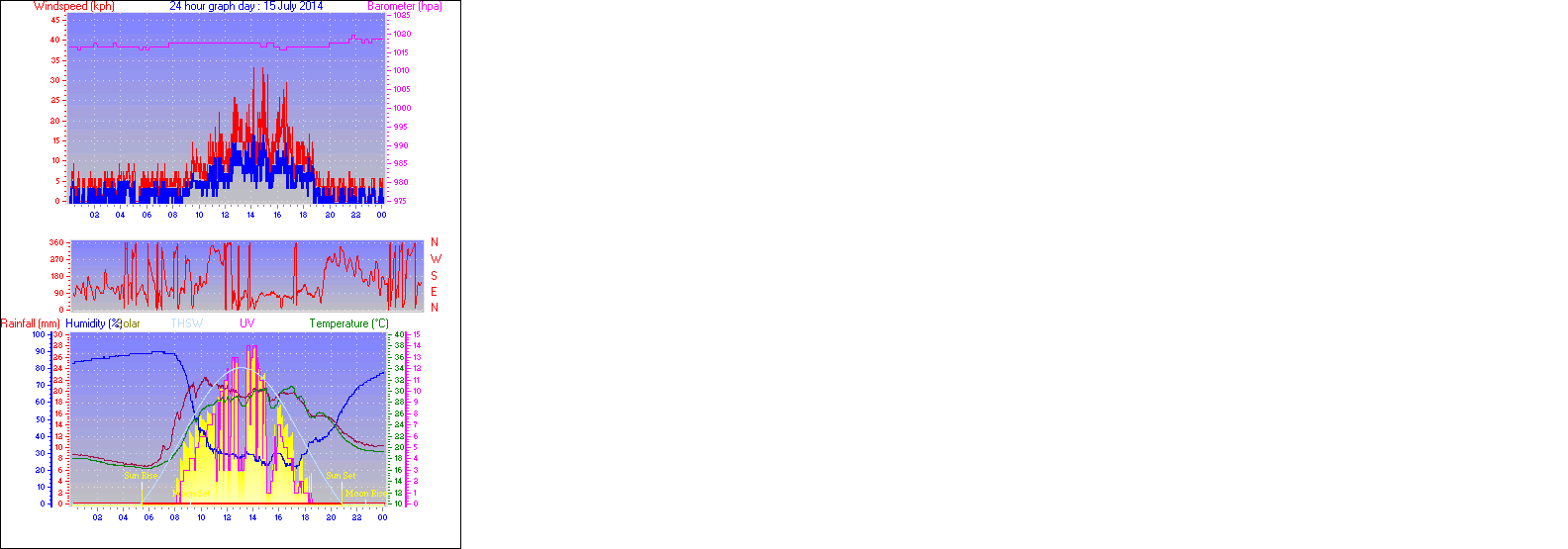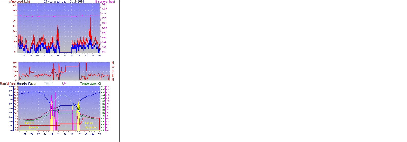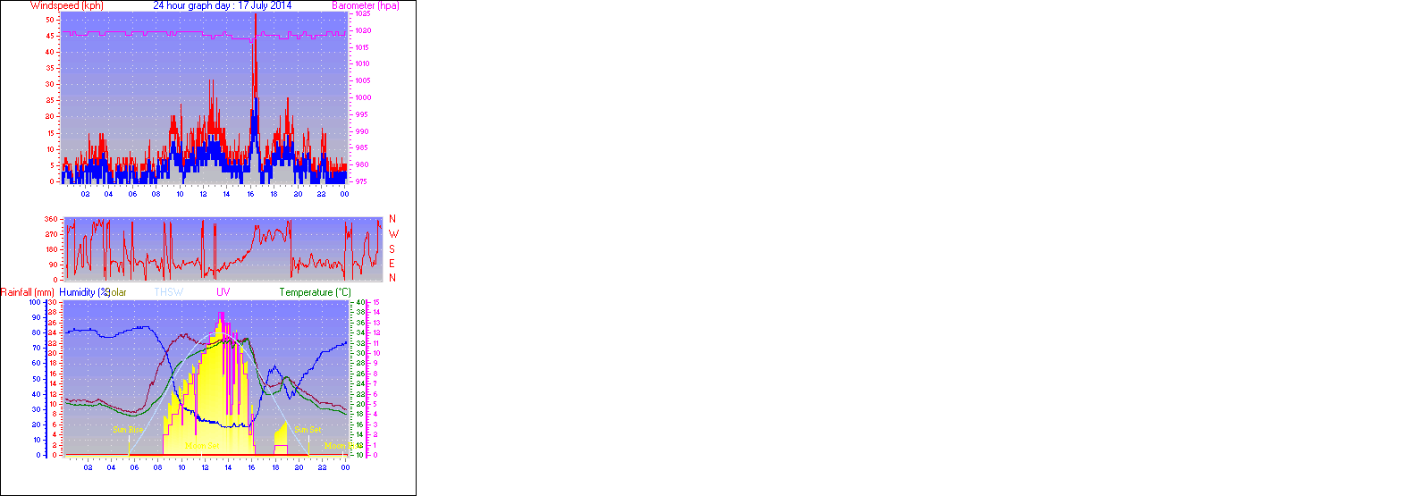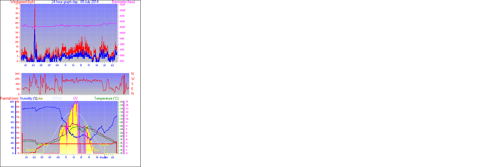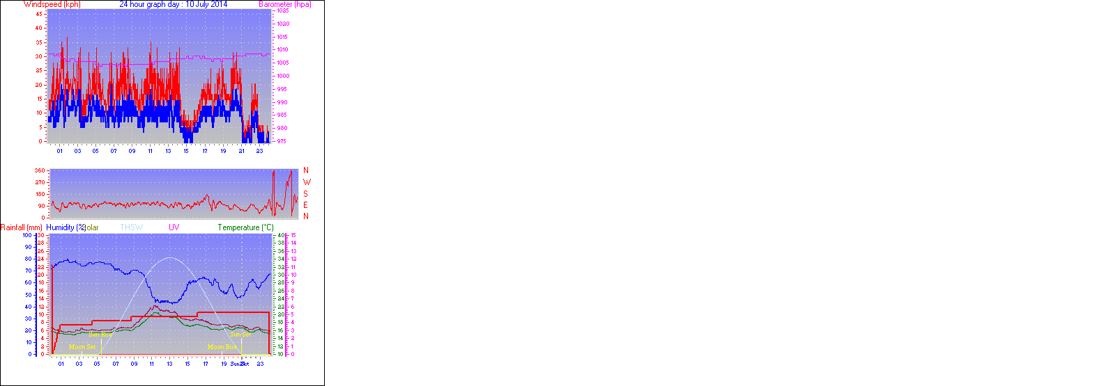 Maximum windspeed = 38.9 kmh from 180°( S ) on day 03 at time 00:56
