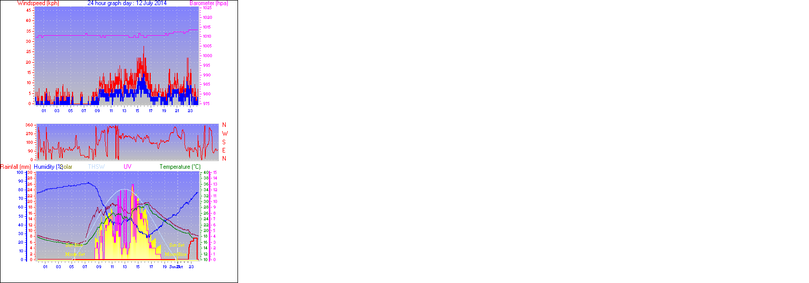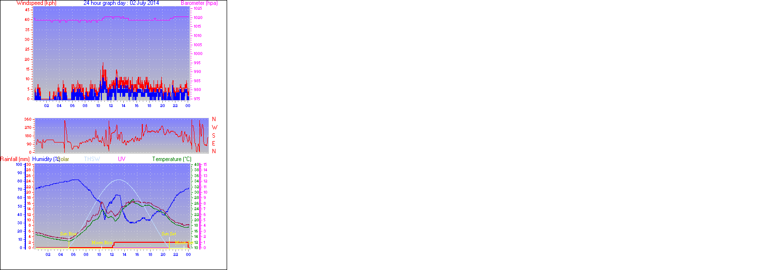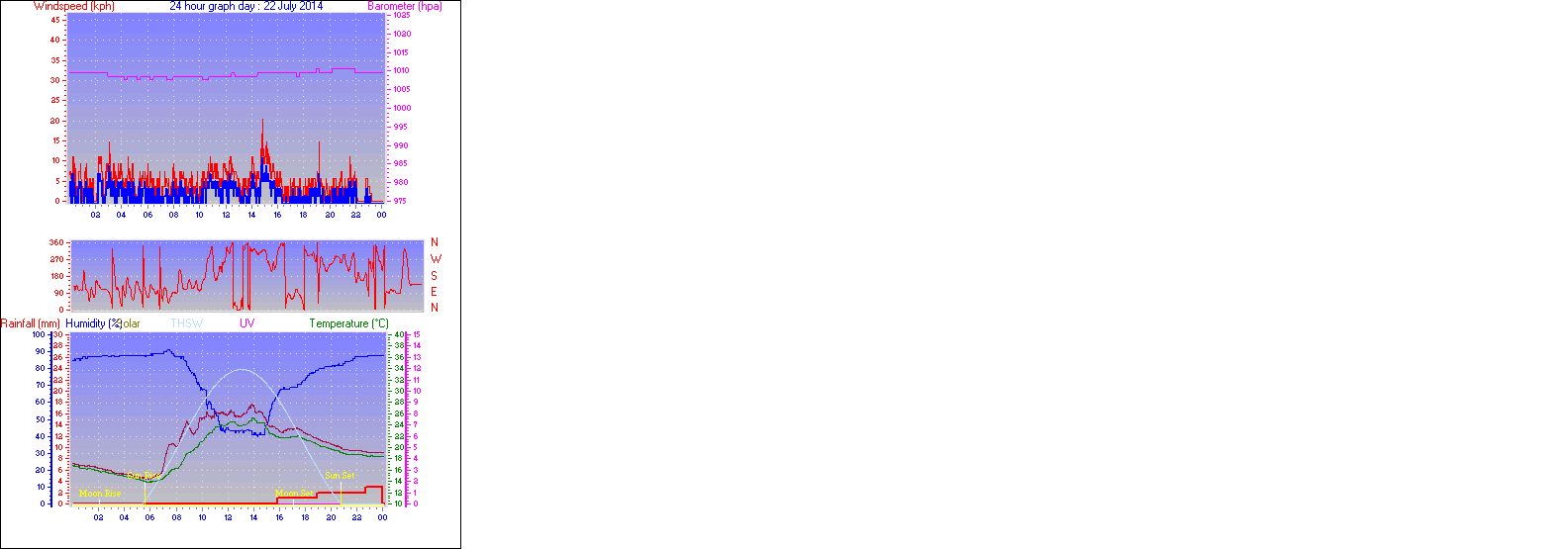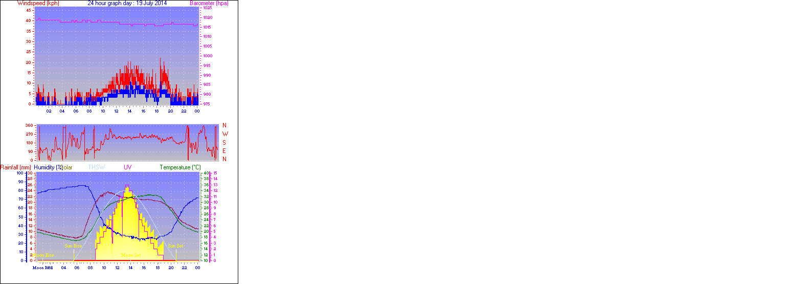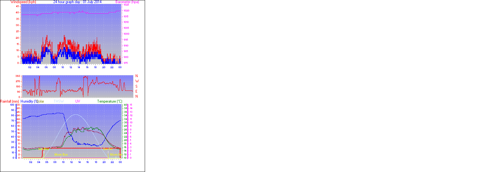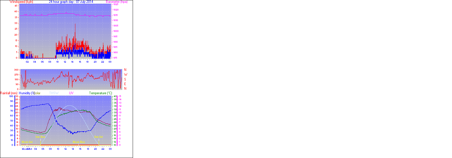 Maximum windspeed = 38.9 kmh from 180°( S ) on day 03 at time 00:56