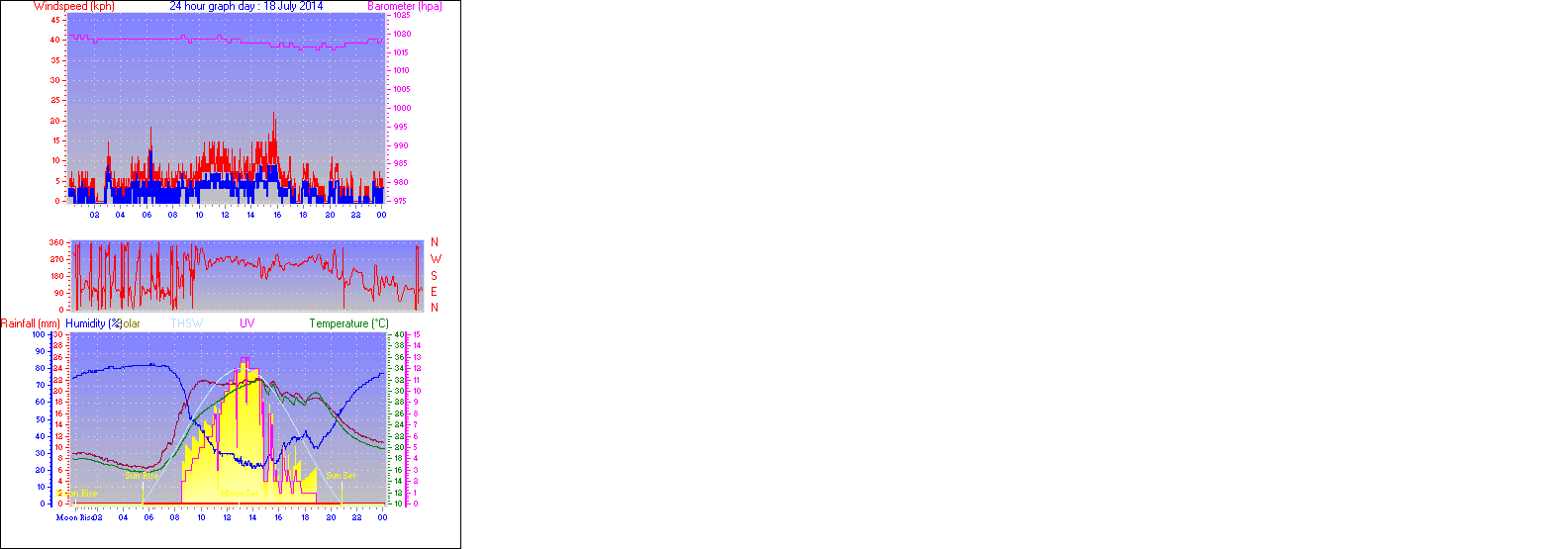 Maximum gust speed = 18.5 km/h from 225°( SW) on day 02 at time 10:48