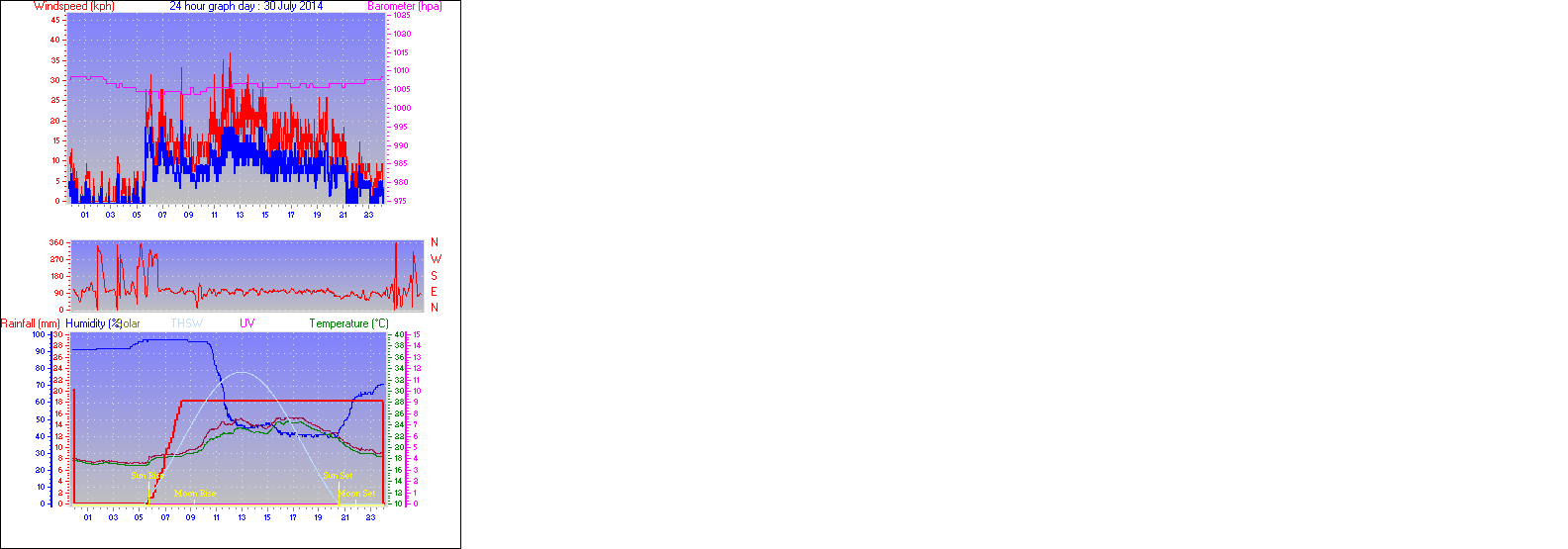 Maximum gust speed = 37.0 km/h from 113°(ESE) on day 30 at time 12:15