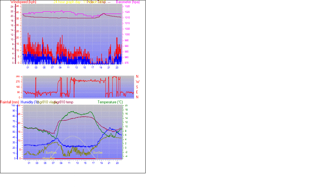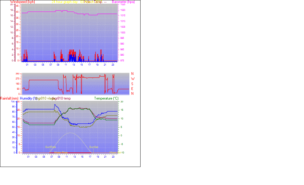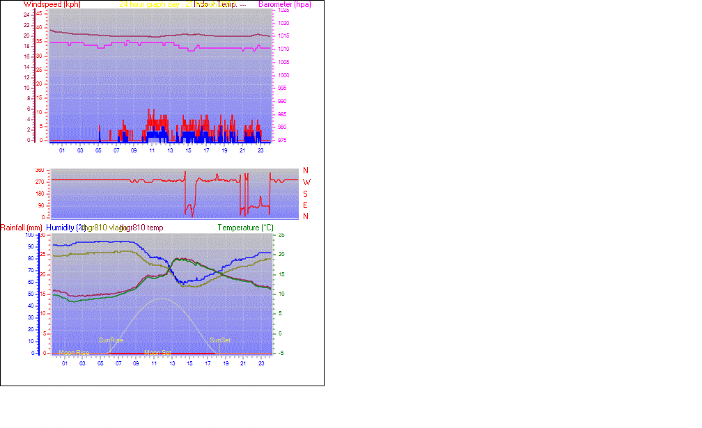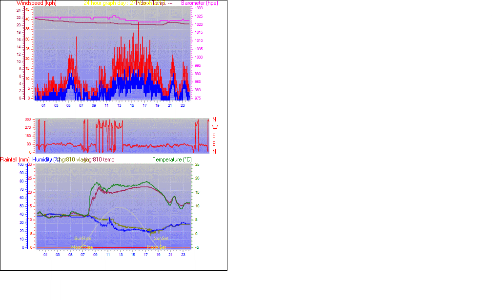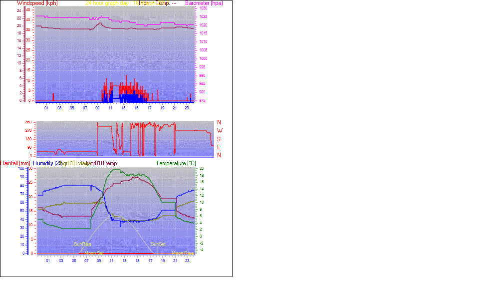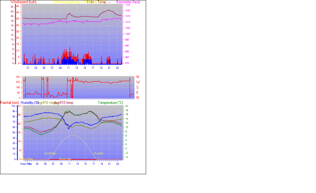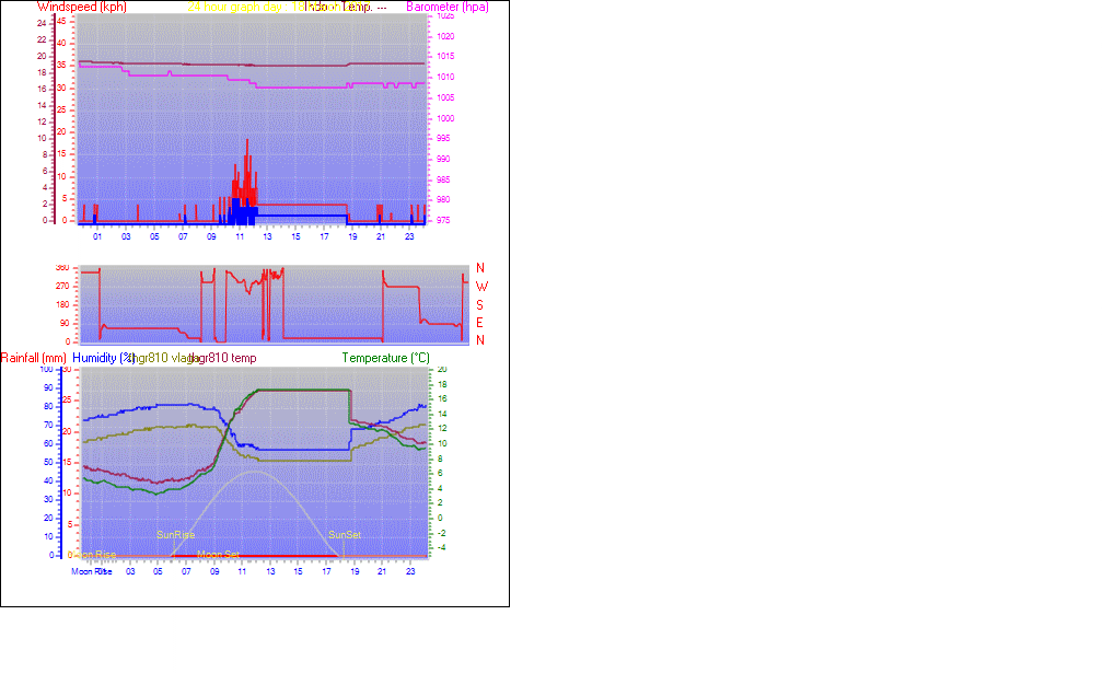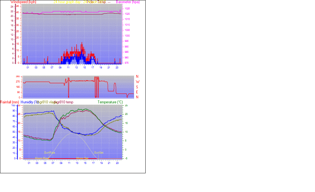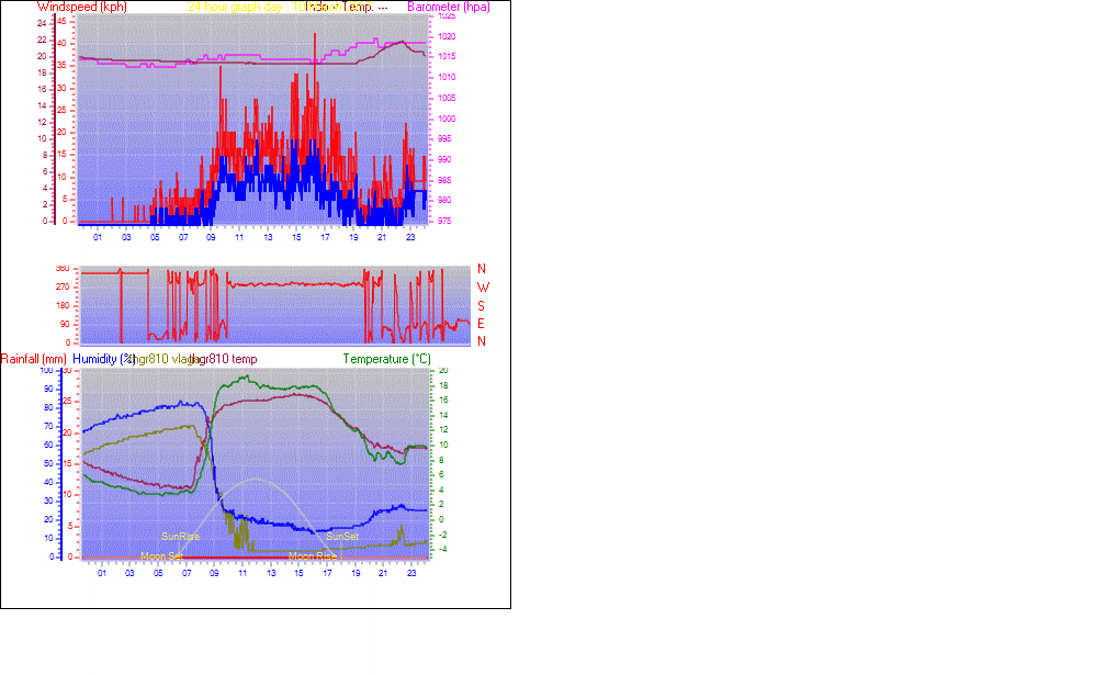 Maximum windspeed = 18.5 kmh from 274°( W ) on day 10 at time 16:19