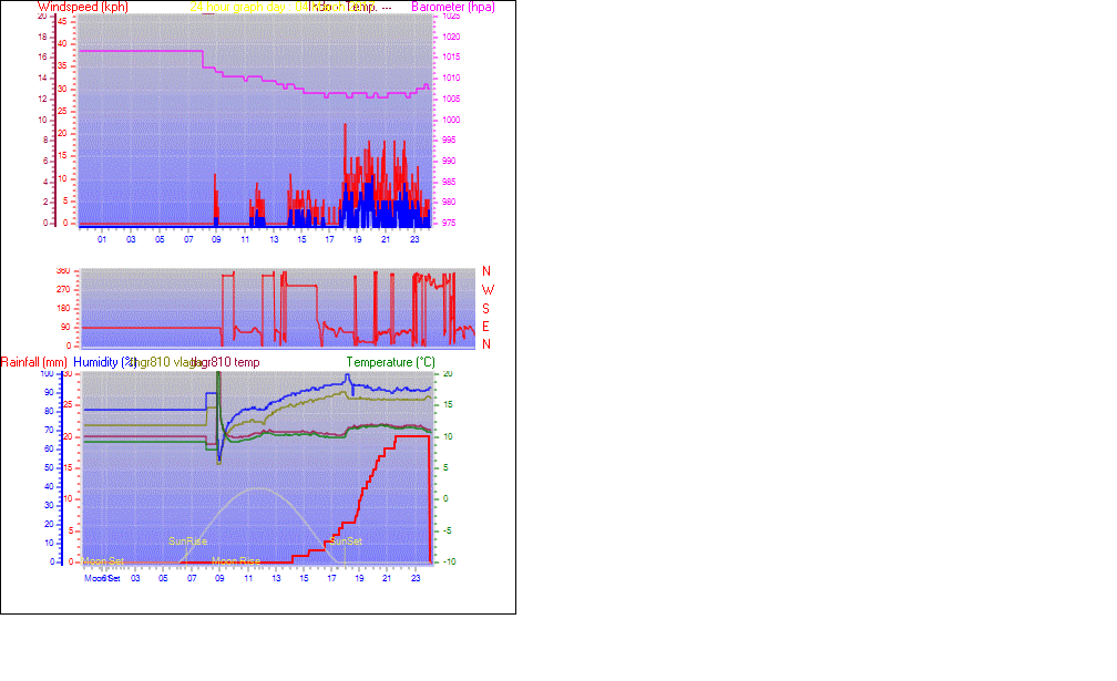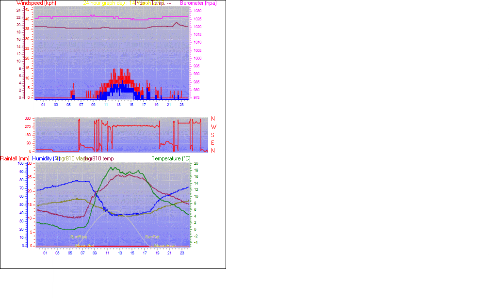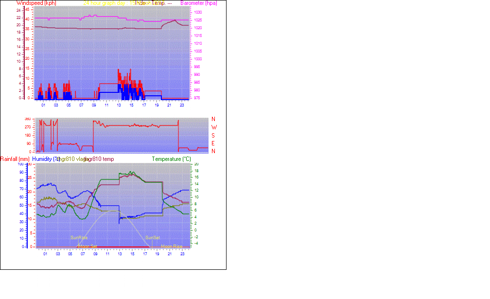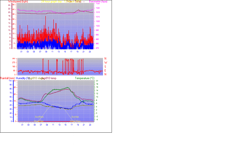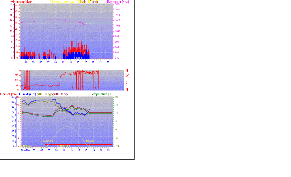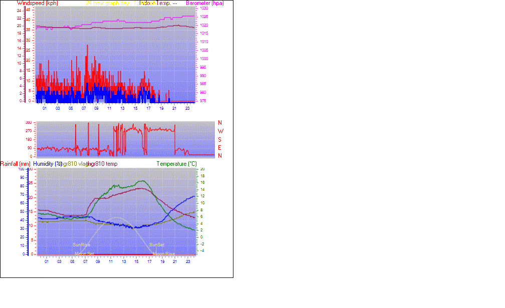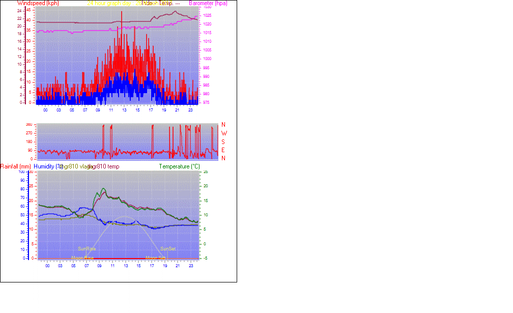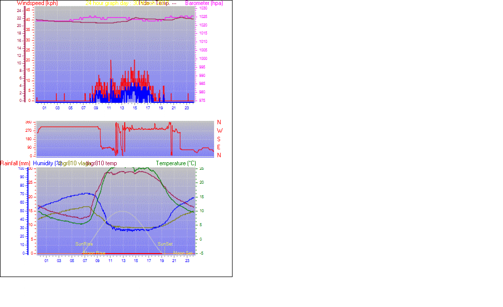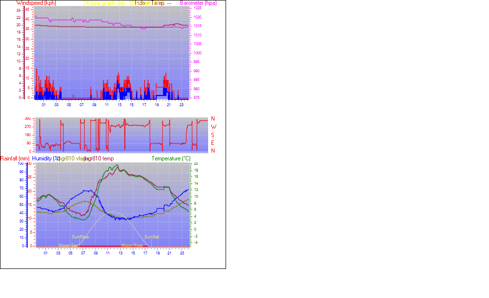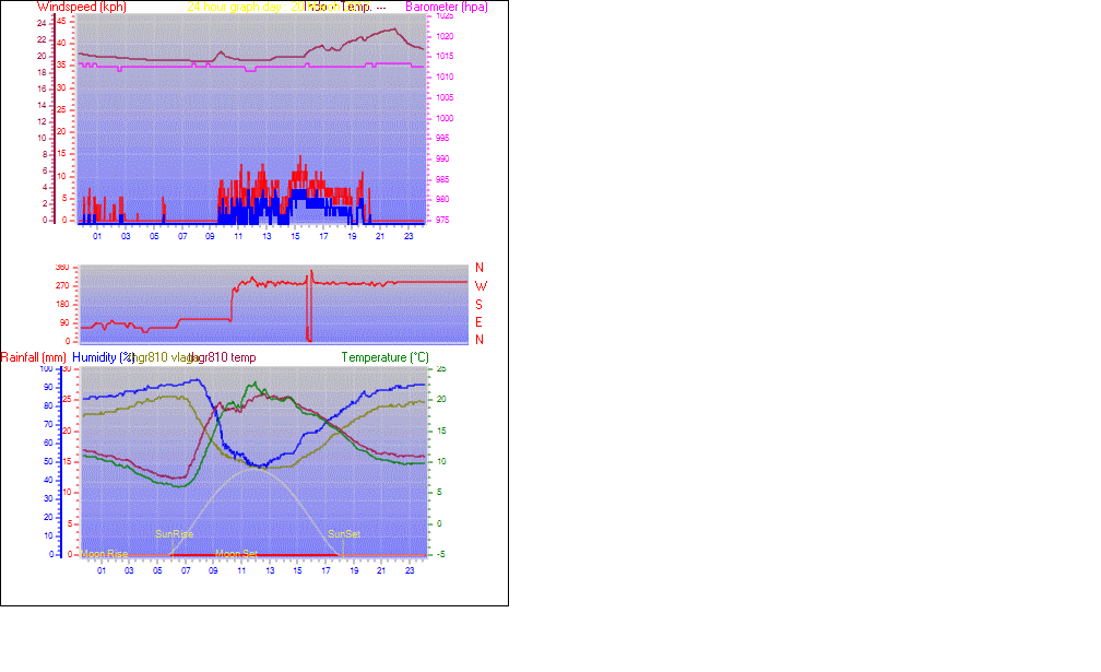 Maximum windspeed = 18.5 kmh from 274°( W ) on day 10 at time 16:19