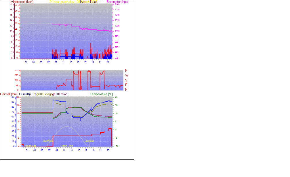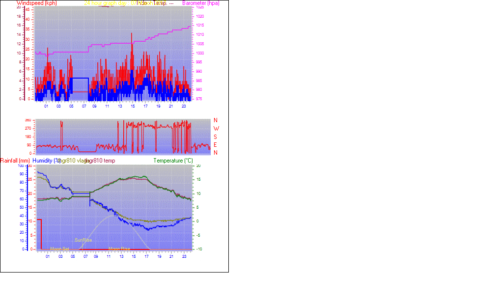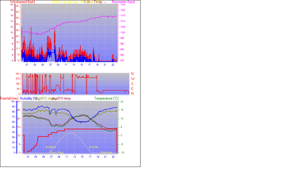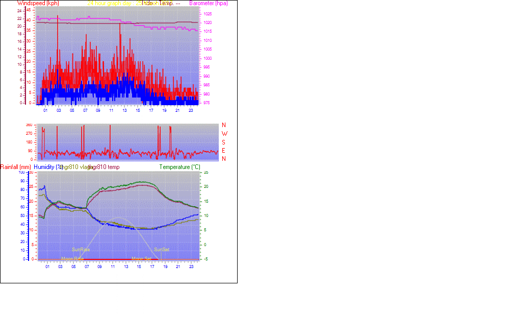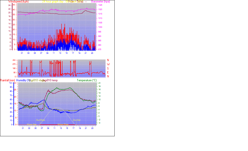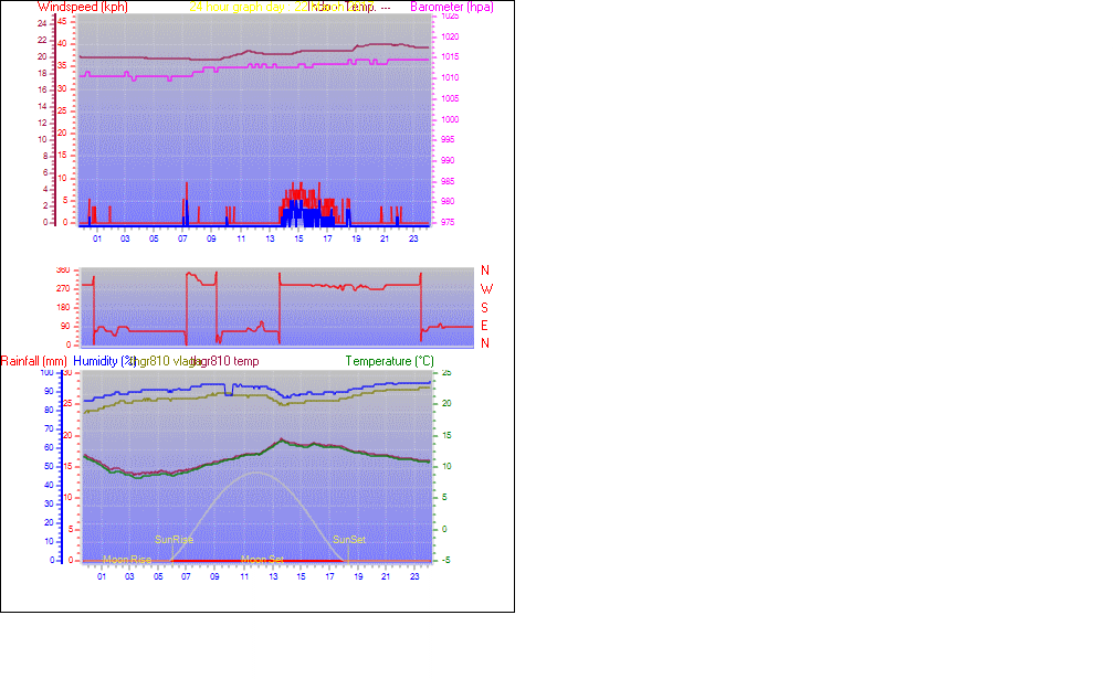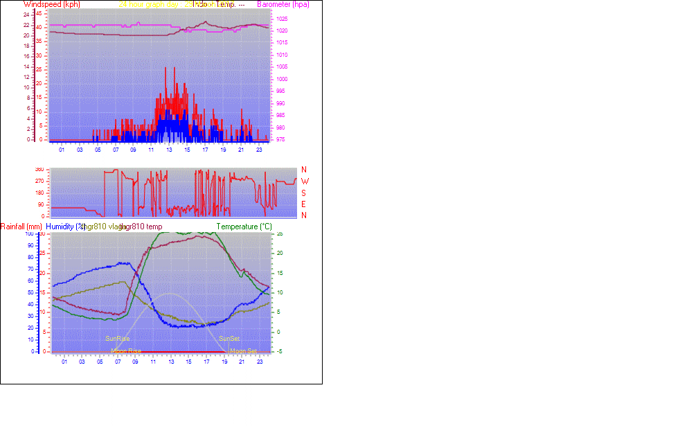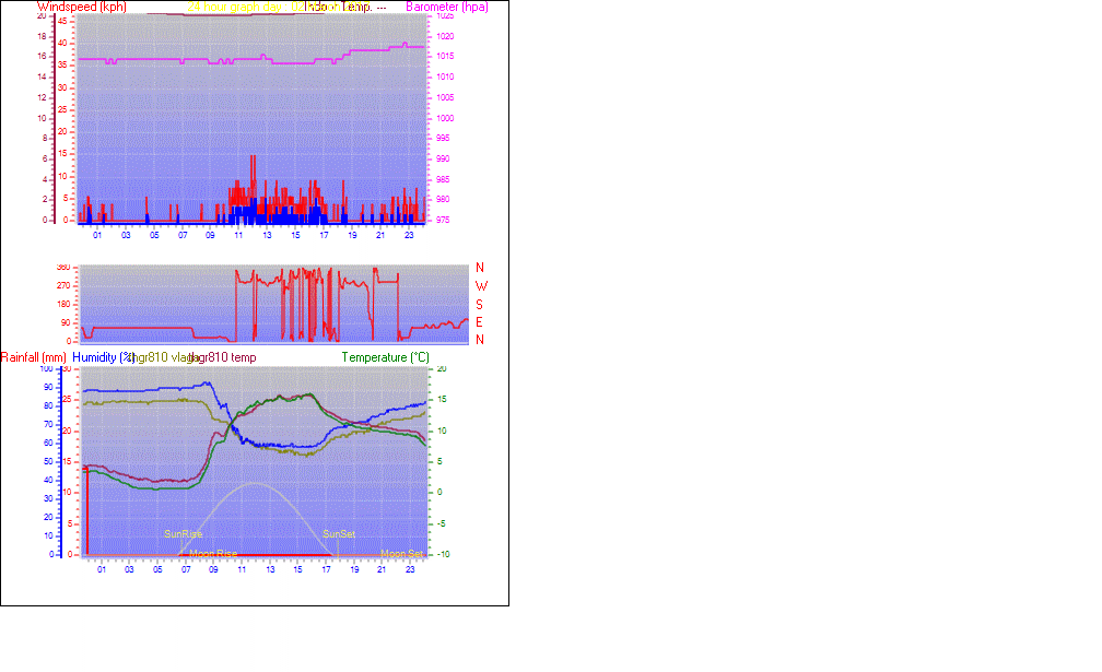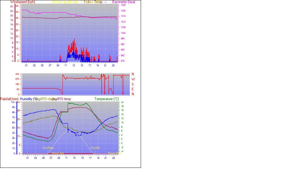 Maximum windspeed = 18.5 kmh from 274°( W ) on day 10 at time 16:19