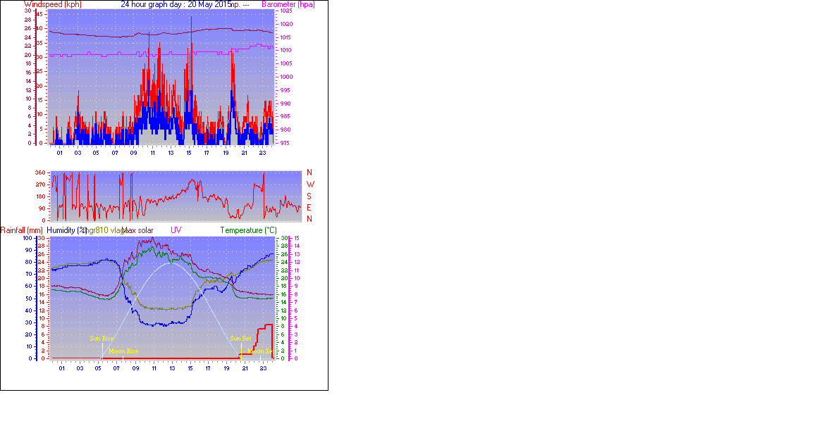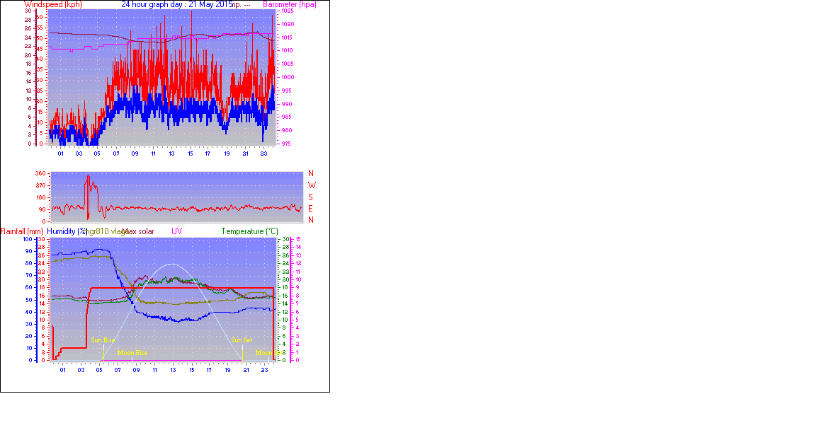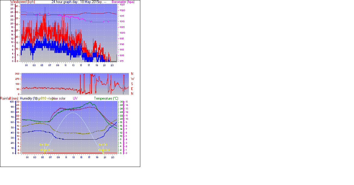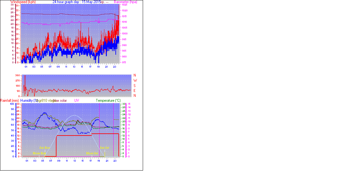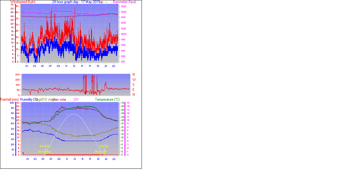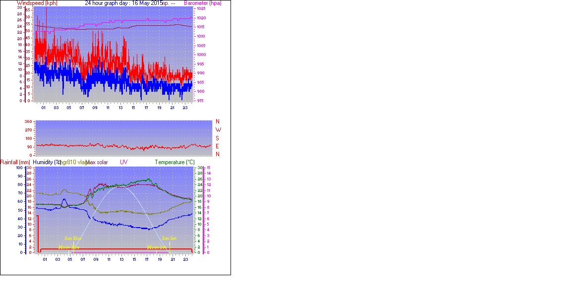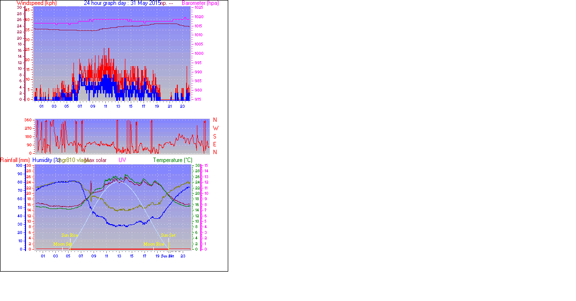 Maximum windspeed = 31.5 kmh from 090°( E ) on day 16 at time 01:28