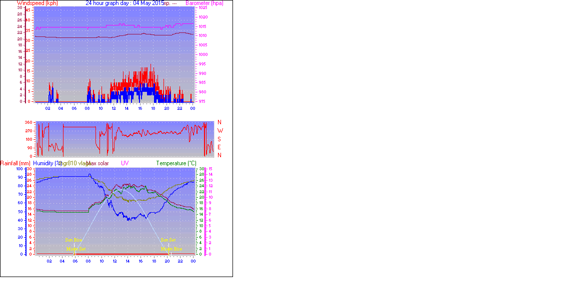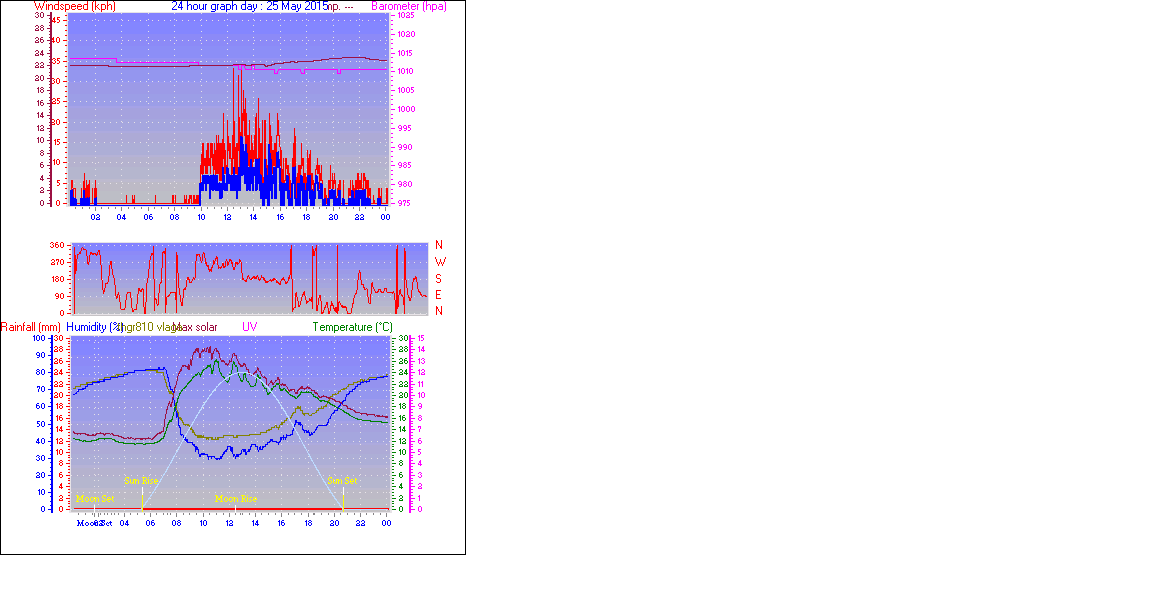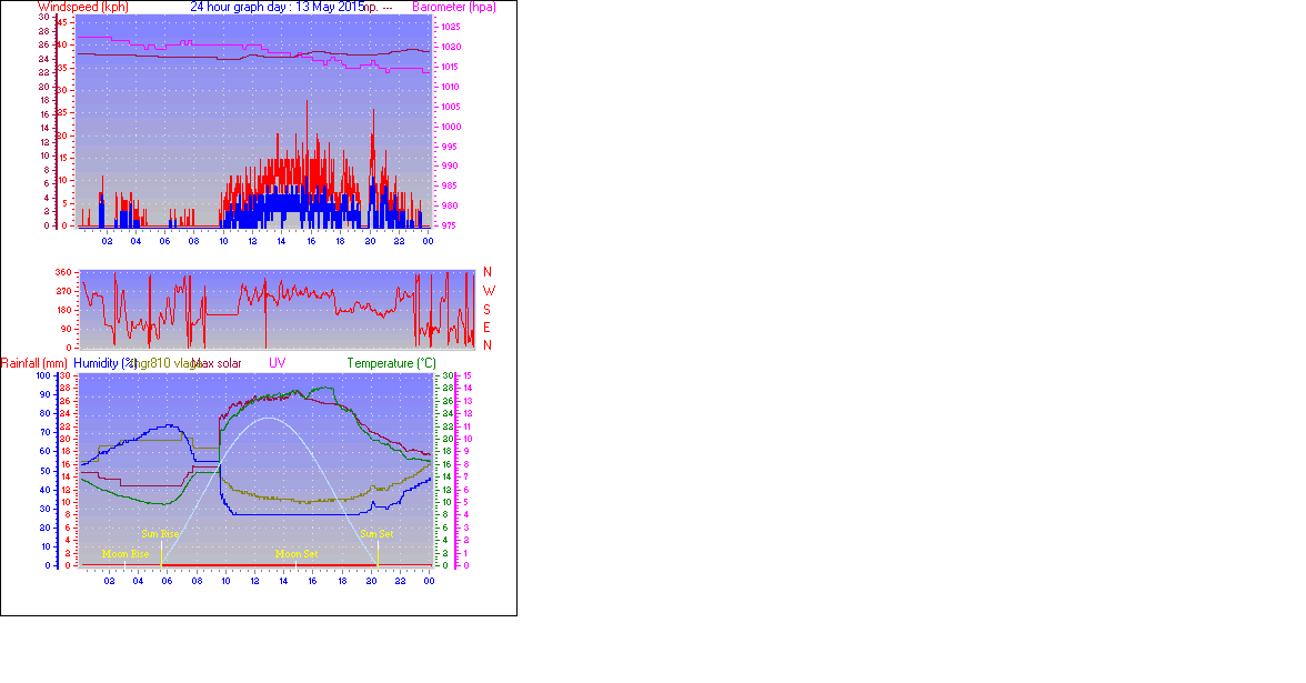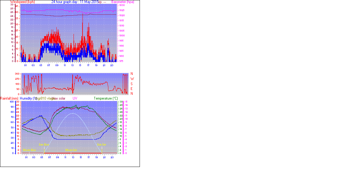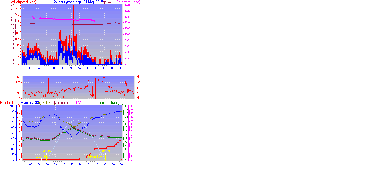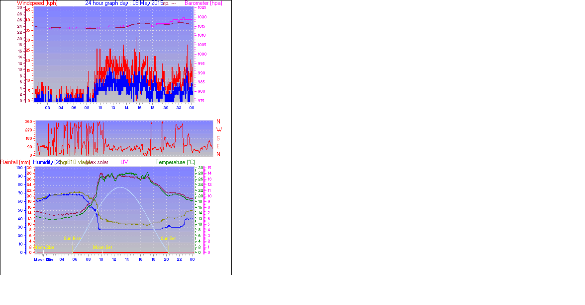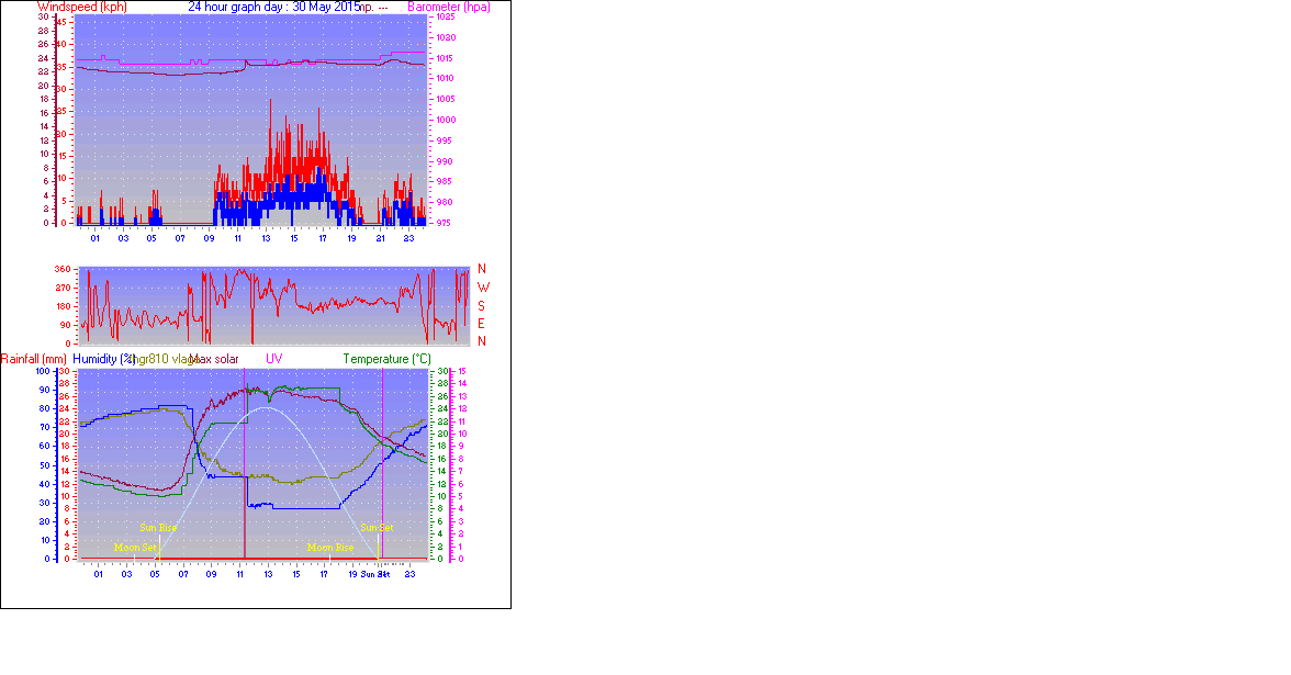 Maximum windspeed = 31.5 kmh from 090°( E ) on day 16 at time 01:28