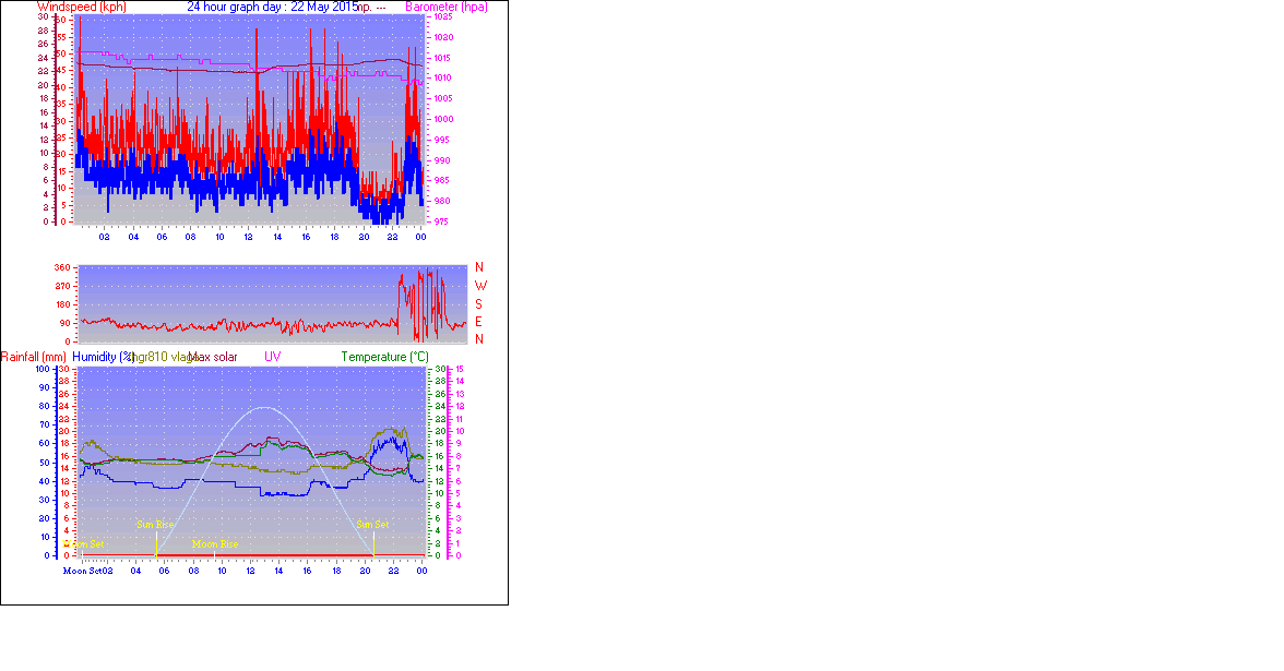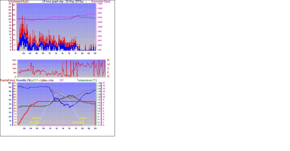 Maximum gust speed = 35.2 km/h from 180°( S ) on day 02 at time 01:39