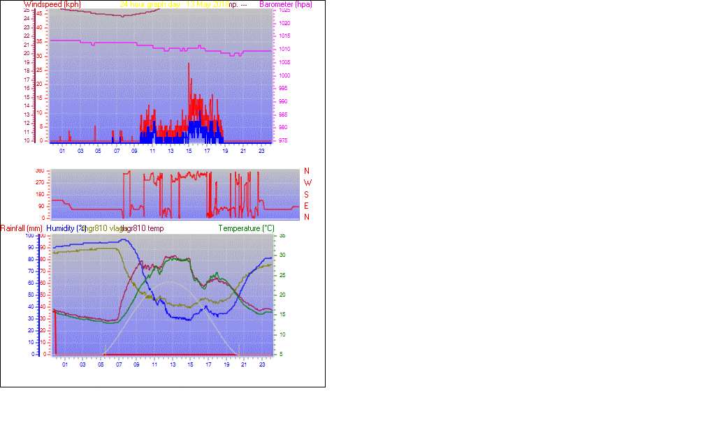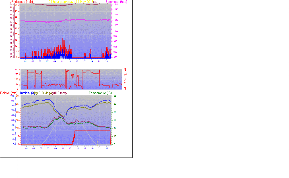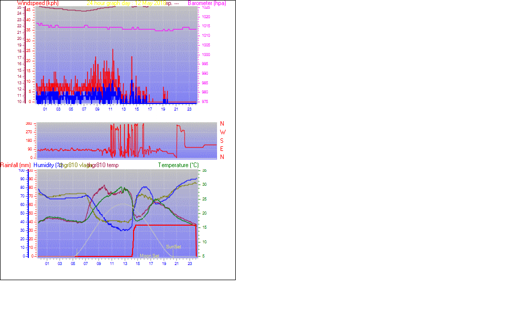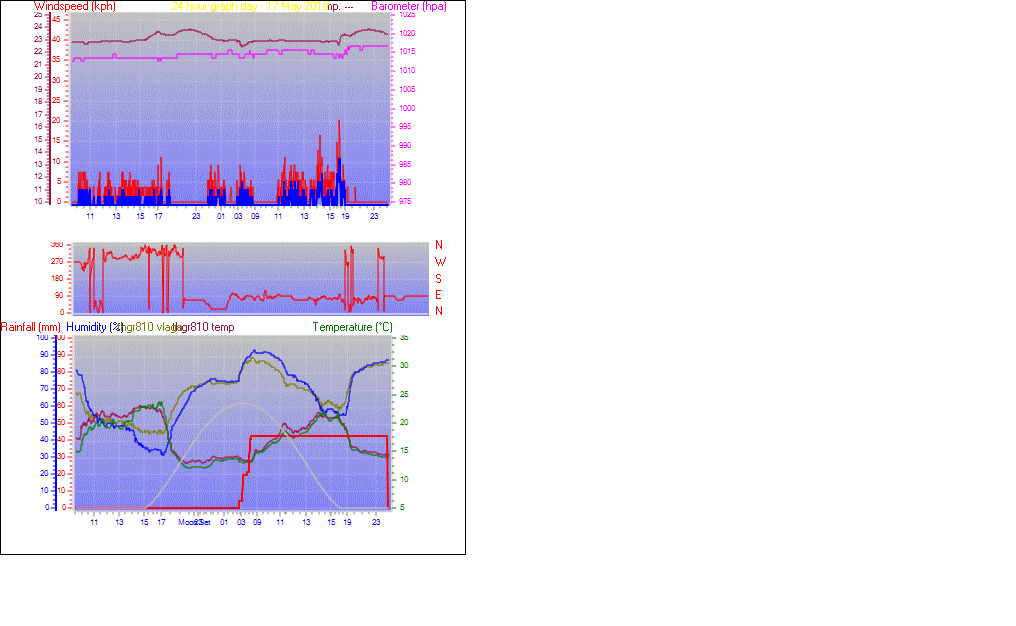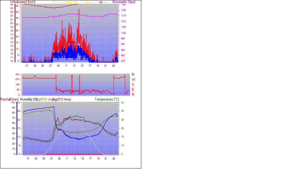 Maximum windspeed = 16.7 kmh from 083°( E ) on day 11 at time 12:12