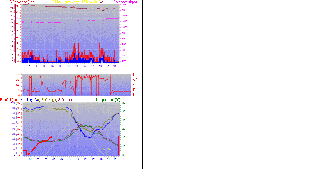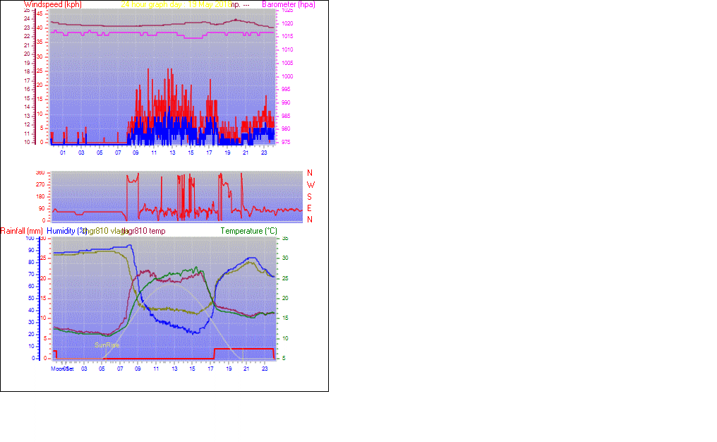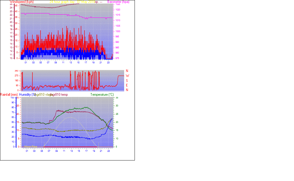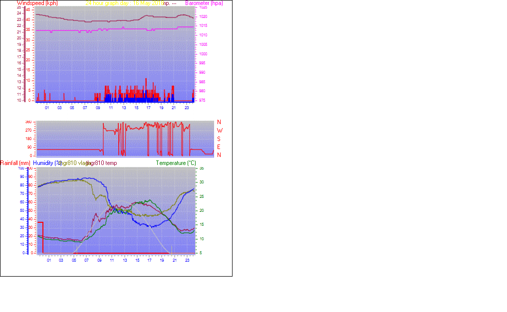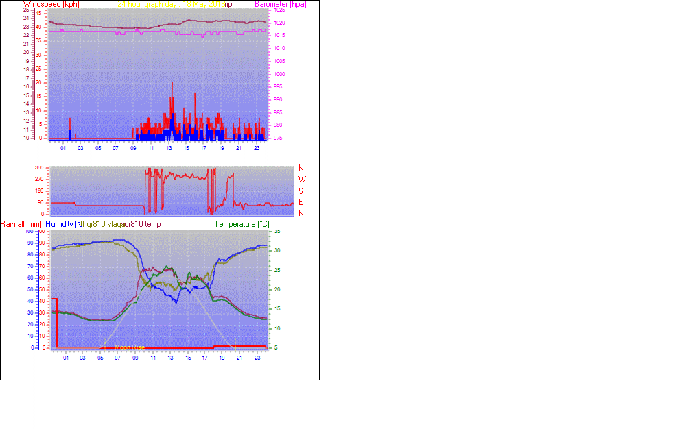 Maximum windspeed = 16.7 kmh from 083°( E ) on day 11 at time 12:12