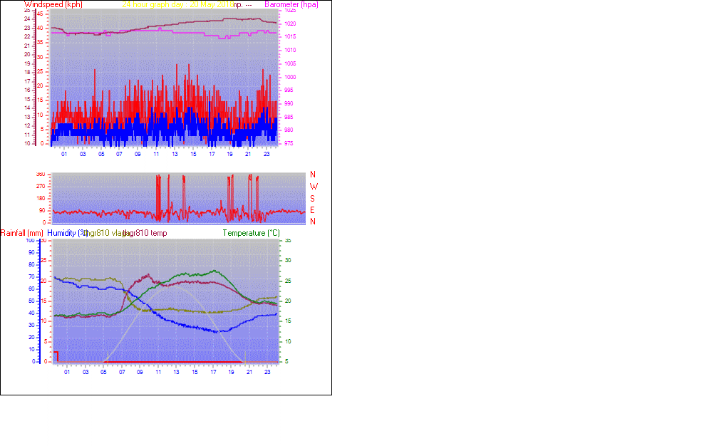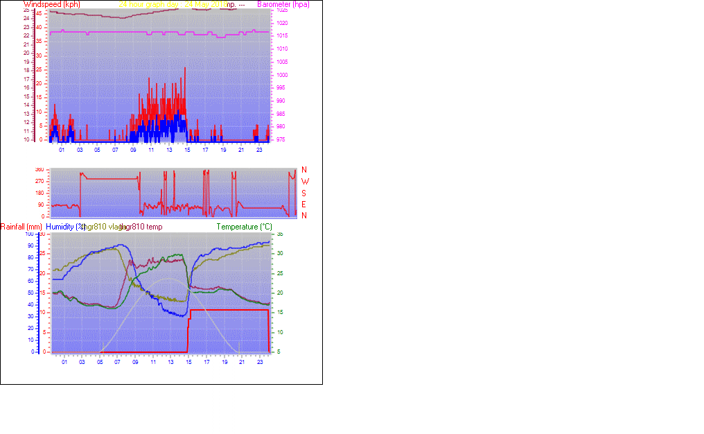 Maximum windspeed = 14.8 km/h on day 25 at time 23:22