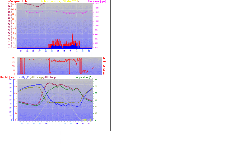 Maximum gust speed = 0.0 km/h from 270°( W ) on day 31 at time 23:01