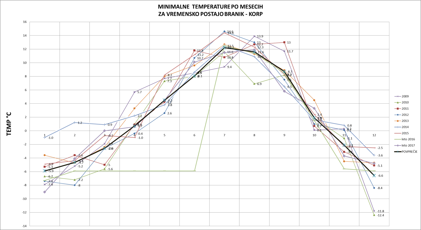 | MINIMALNE TEMPERATURE PO MESECIH | ||||||||||||||||||||||