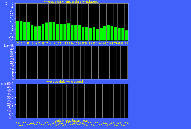Maximum windspeed = 0.0 kmh from 0-0°( N ) on day 08 at time 00:02