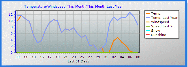 Warmest day on record 11.7 oC on: 09 Dec 2025