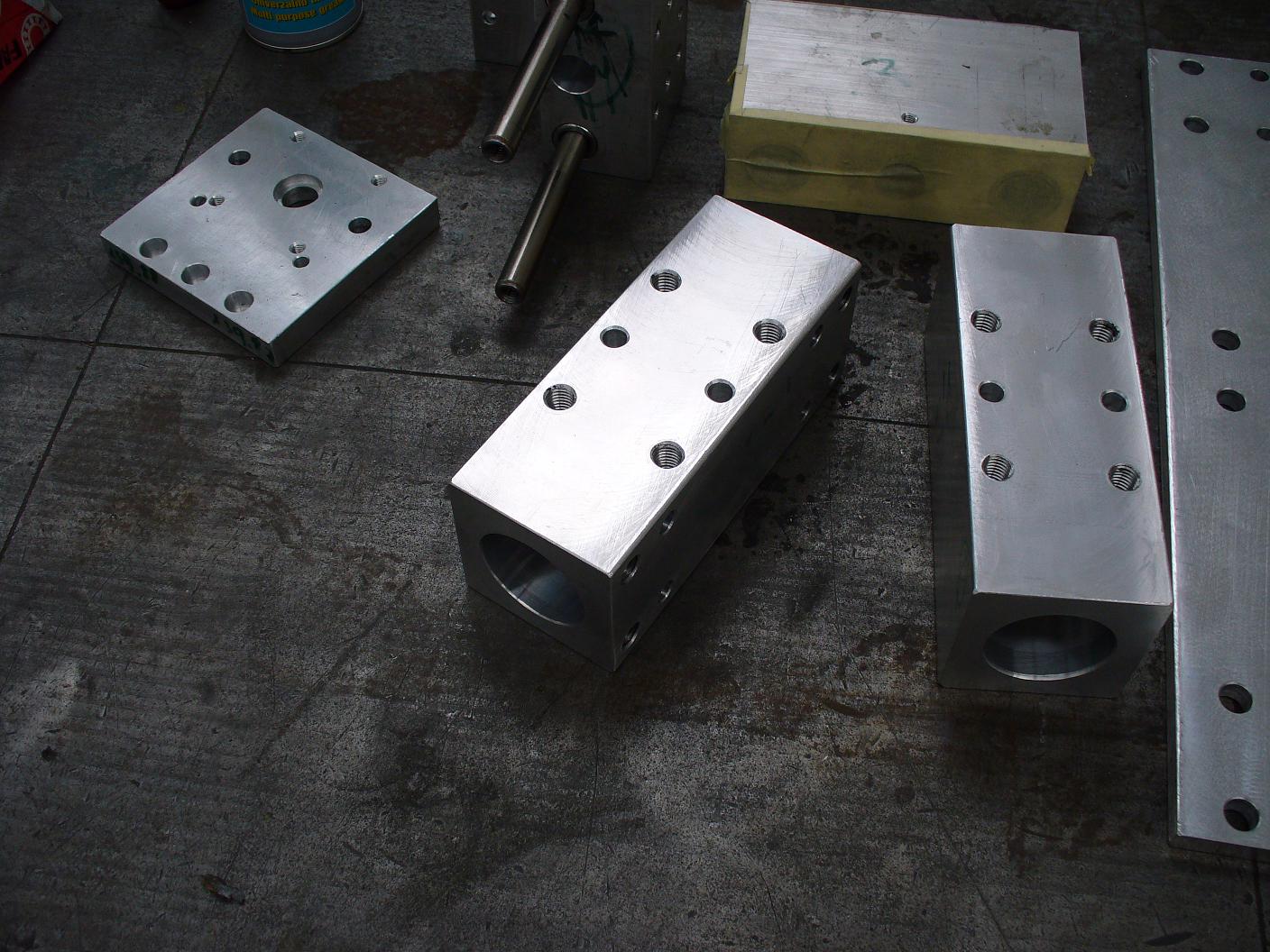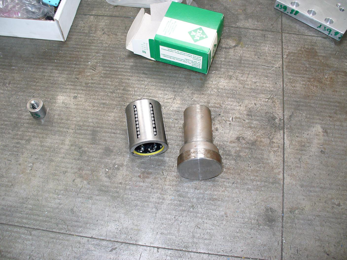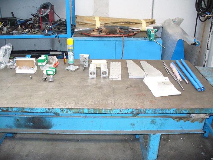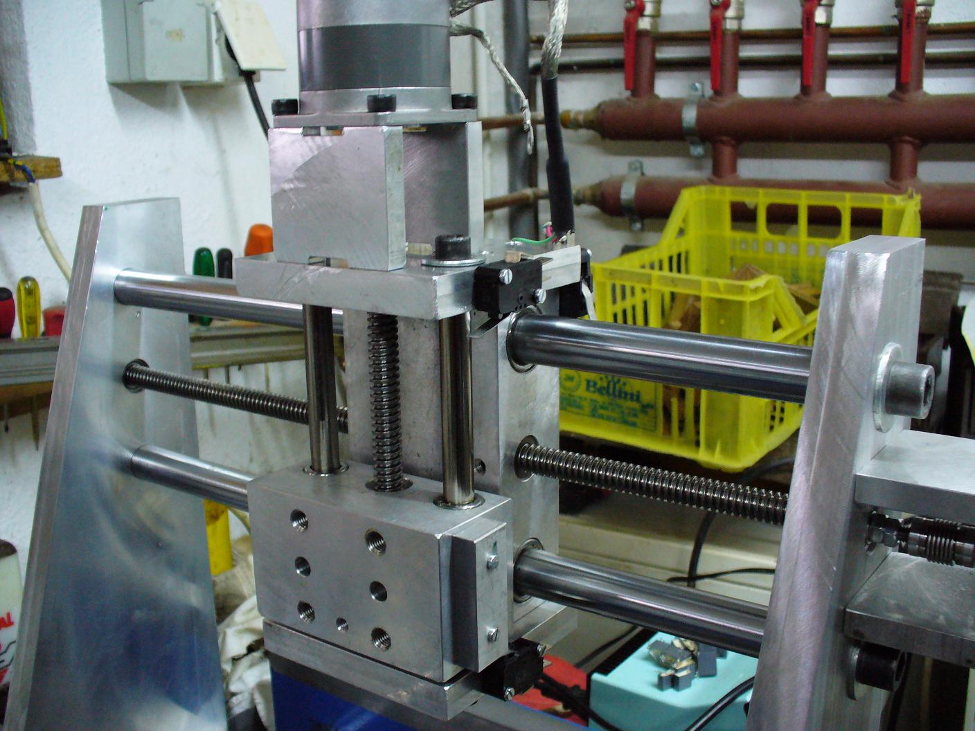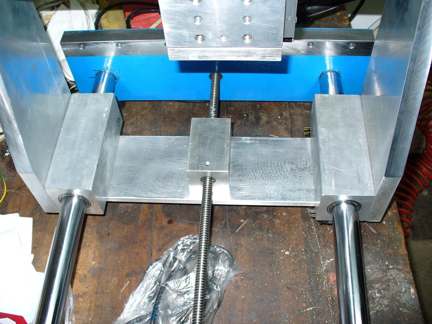 - Mehansko izdelamo vse dele. Ustrezno obdelamo vodila ter vreteno. V mojem primiru sem uporabil trapezno vodilo, kar mi je zelo žal. Srcno priporočam sicer dražjo kroglično vodilo. Vse vijake pa odsvetujem, saj je natančnost zelo slaba zračnost pa velika, pa se zapacajo se hitro. Premir vretena naj je sorazmeren z dolzino vretena. Dalše kot je vreteno debelejše naj je vreteno, sicer pride lahko do "zvijanja" vretena na sredini, kar pomeni poskakovanje in lahko tudi preskok na koračnem motorčku! Temu se lahko izognemo tudi z manjšim pomikom. Pri koraku vretena naj vas ni strah izbrati vsaj 4! Izgleda grozno, ampak če vemo, da ima koračni motor največji navor ravno pri nizkih vrtljajih je to zelo pametno. Enako kot velja za vreteno velja tudi za vodila. Daljša kot so večji mora biti premir.