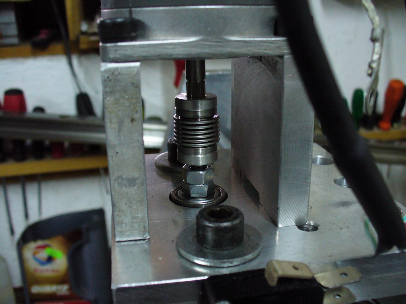 - Ko imamo vse pripravljeno počasi začnemo s sestavljanjem. Za spremembo od hiše tu začnemo z sestavljanjem od zgoraj navzdol. Se pravi prvo "Z" del, potem "Y" in na koncu "X". Saj drugace pa tudi sestaviti ne boste mogli. Tu predvsem pazimo na zračnost v vretenu. Od tega je zelo odvisno natancno delovanje stroja ter seveda vibracije. Glede na to, da so aksialno radialni lezaji zelo dragi, sem uporabil "finto" in zgoraj uporabil kar 2. klasicna lezaja in jih rahlo zategnil drug proti drugemu.