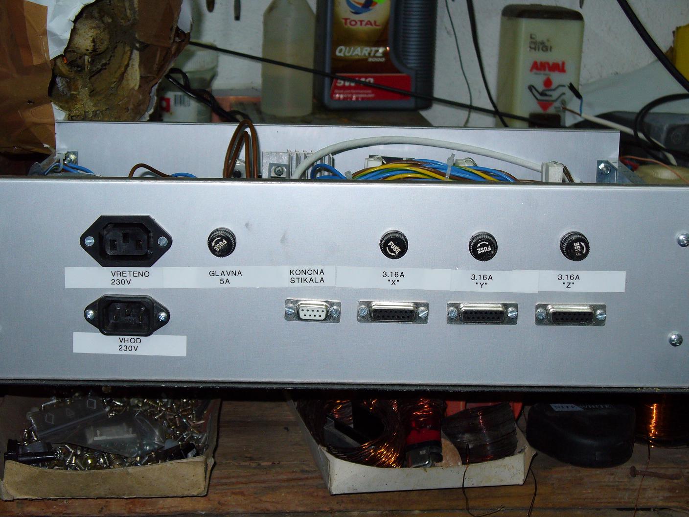 - Nazadnje sestavimo elektroniko. To je prepuščeno vsakemu posamezniku, kaj bo uporabil. Jaz sem se odlocil za CNC 3AX, ker je enostavna, poceni in zmore krmiliti zelo visoke tokove. Dodal sem tudi enostavno elektroniko za avtomatski start ter regulacijo vrtljajev z mehkim zagonom.