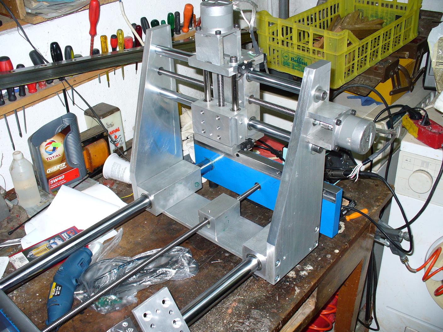 Končno je želja postala resničnost. V službi sem si lahko v popoldanskem času izdelal vse, kar sem rabil mehanično obdelavo. Koračne motorčke sem kupil na sejmu. Elektroniko sem si sestavil sam po načrtu CNC 3AX, ki sem ga nasel na internetu. Na računalniku je naložen program MACH 3 . Tu nimam namena opisovati, kako se programira in ostale trike. Tu bi rad pomagal z nasveti pri fizični izdelavi stroja, ker sem sam imel kar nekaj težav.