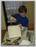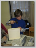 ŽAGAMO, BRUSIMO, ZABIJAMO ŽEBLJE... NAREDILI SMO PTIČJO KRMILNICO. V ŠOLI JO BOMO LE ŠE ZAŠČITILI S PREMAZOM ZA LES.