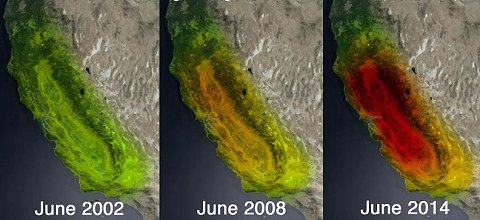 Zaradi podnebnih sprememb se suše v Kaliforniji pojavljajo 3x pogosteje in so 4x izrazitejše od naravnih ciklusov. Zaradi povečane koncentracije kemijskih sredstev je kakovost vode vedno slabša, pogostejši so tudi gozdni požari.