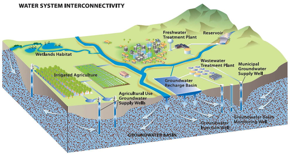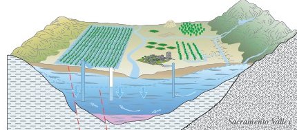 Tri četrtine kalifornijskih vodnih zalog prihaja iz severnega Sacramenta, 80% porabnikov pa se nahaja v južnih dveh tretjinah države. Po umetno zgrajenih kanalih dovajajo vodo iz zbiralnikov v goratem zaledju do več 100 km oddaljenih porabnikov.