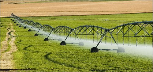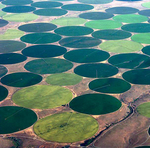 Do konca 19. stoletja so kmetje začeli črpati podtalnico iz vrtin, najprej s pomočjo vetrnic, kasneje z bencinskimi črpalkami. Nivo podtalnice se je nahajal globoko pod površjem. Namakalne cevi so prestavljali po poljih, ob žetvah pa so morali sistem razstaviti. Leta 1952 so patentirali postavitev črpalke poleg vodnjaka v središču polja. Voda se je pretakala po namakalnih ceveh na kolesih, ki so krožile okoli črpalke in namakale krožno zemljišče. Sistem lahko namaka 130 x 160 ha veliko zemljišče in ga delavcem ni treba premikati ter razstavljati v času žetve.
