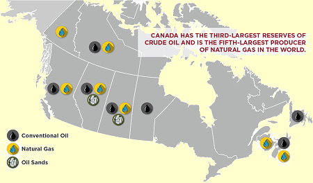 Kanada - leta 2015 je imela 3. največje zaloge, bila 5. največji proizvajalec in 4. največji izvoznik nafte na svetu in 5. proizvajalec zemeljskega plina; 2/3 dokazanih rezerv kanadske nafte se nahaja v naftnih peskih; 90 % nafte izvaža v ZDA.