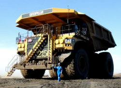 Pri dnevnem kopu najprej posekajo gozd. Nato s površine postrgajo 30 m debelo krovno plast iz šote, laporja in peščenjaka. Velikanski bagerji zajamejo več 10 t sedimenta in ga nalagajo na tovornjake, ki imajo nosilnost 320 t.