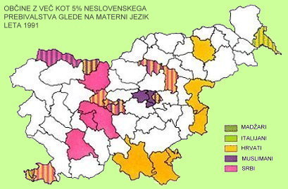 Večina prebivalcev Slovenije ima slovensko državljanstvo, tako je v Sloveniji leta 2010 prebivalo le 3,5% tujcev. Slovenija je precej homogena država, saj predstavljajo Slovenci več kot 80% prebivalstva. V državi živita italijanska in madžarska narodna manjšina ter posebna romska etnična skupnost. Pravice obeh manjšin so zagotovljene z ustavo. Na narodno mešanih ozemljih sta poleg slovenščine uradni jezik tudi italijanščina in madžarščina. Poleg tega imajo pravico do uporabe narodnih simbolov, do vzgoje in izobraževanja v svojem jeziku in do svojih predstavnikov v organih lokalne skupnosti in v Državnem zboru...