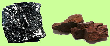 antracit in lignit antracit (starost - 400 milijonov let, vsebuje 92-98% ogljika, vrednost 26-33 MJ/kg), lignit (starost - 1 milijon let, vsebuje 60-70% ogljika, vrednost 10-20 MJ/kg) |