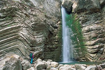 dolino Kolpe je oblikovala reka z erozijo in akumulacijo slap v dolini Soče in brzice Krke (klik)
