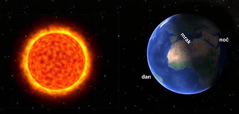 Vsa svetloba v vesolju prihaja od zvezd. Edina zvezda v našem Osončju je Sonce. Kraji, ki so obrnjeni k Soncu imajo dan, kraji v Zemljini senci pa noč. Sonce torej navidezno vzhaja in zahaja podnevi, zvezde pa ponoči. Zaradi rotacije našega planeta, tudi zvezde navidezno "potujejo" po nebu.