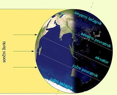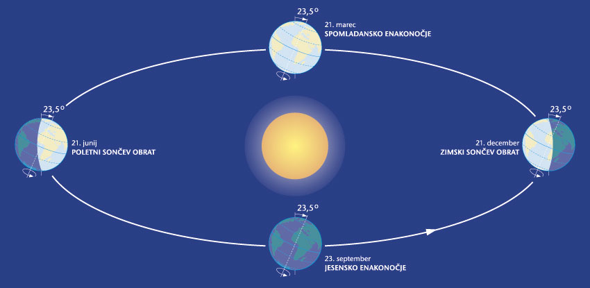 Zaradi nagnjenosti Zemljine osi se preko leta spreminja vpadni kot sončnih žarkov in s tem ogretost. Na poti Zemlje okoli Sonca so pomembni 4 položaji Zemlje , ker se z njimi začnejo astronomski letni časi.