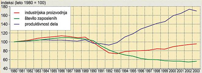 Industrijska proizvodnja, število zaposlenih in produktivnost (Vir: Založba Modrijan, Ljubljana)