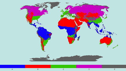 Najpogosteje uporabljen sistem za razvrstitev podnebja je leta 1900 objavil Nemec Vladimir Peter Köppen. Podnebja je razdelil glede na temperaturo zraka in padavine. Köppenova razvrstitev loči naslednje podnebne tipe: tropsko deževno (A), suho (B), zmerno toplo deževno (C), mrzlo (D) in polarno podnebje (E).