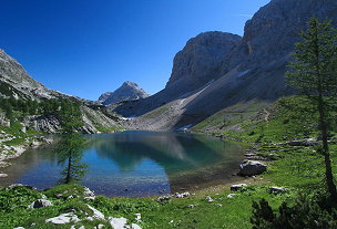 Ledeniška jezera Voda se zbira v kotanji, ki jo je poglobil ledenik in na dnu odložil vodoneprepusten material (talno ledeniško moreno). Prava ledeniška jezera so Triglavska, Krnsko in Mangartski (Belopeški) jezeri. Blejsko in Bohinjsko jezero sta tektonsko-ledeniškega nastanka.