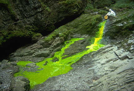Smer, hitrost in vodno zaledje kraških podzemnih voda strokovnjaki določajo s sledilnimi poskusi - barvanjem. Pri poskusu so najizdatnejše priprave - izdelati je potrebno številne predhodne študije (geološke, reliefne, jamarske, padavinske...) in načrtovanje pogostosti in trajanje vzorčenja, kontrolne in ciljne točke itd.