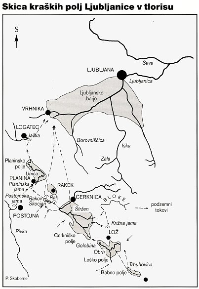 Za celoten sistem podzemnega pretakanja vode na krasu so pomembni kraški požiralniki - ponori in ponikve, v katere izginjajo ponikalnice z zemljinega površja ter kraški izviri - obrhi.