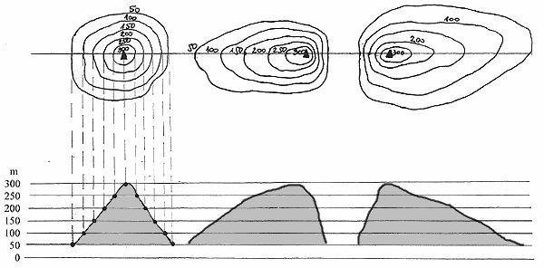so višinske črte, ki povezujejo točke z isto nadmorsko višino. "Branje" izohips zahteva precej spretnosti in izkušenj, je pa uporabno, kajti plastnice prikazujejo nadmorsko višino in istočasno oblikovanost površja.