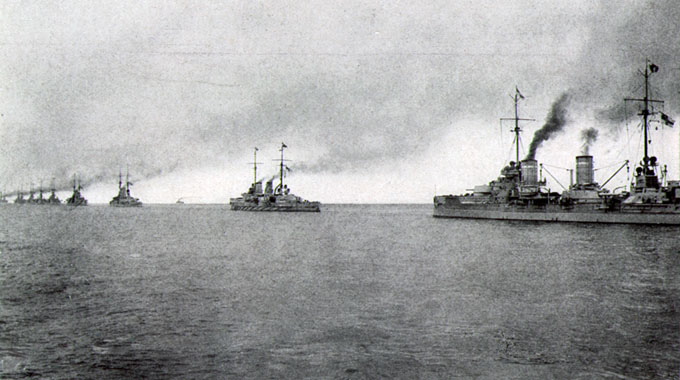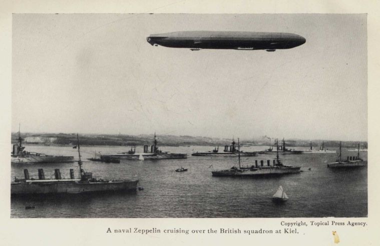 Cepelin kroži nad britansko floto pri nemški luki Kiel