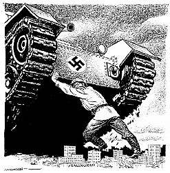 Obkolitev nemških enot, ki so v poletni ofenzivi prodrle na južni fronti globoko do Volge in Stalingrada, se je pričela med 19. in 21. novembrom 1942. Stalingrad je bil ključ sovjetske protiofenzive. Na obleganje Stalingrada so hoteli namreč vezati čim večje nemške sile in nato izvršiti obkolitev ter uničenje del po del nemške 6. armade. Nemški poskusi preboja in pomoč Hoepnerjeve tankovske armade niso uspeli. Nemškea armada se je po 82 dneh neprestanega grmenja in bojevanja pod poveljstvom Friedricha von Paulusa vdala 31.1. V rusko ujetništvo je odšlo 107800 nemških vojakov, med njimi 24 nemških generalov; po vojni se je vrnilo manj kot 6000 ujetnikov.