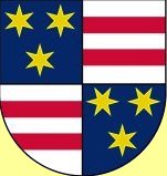 * grb Celjskih - kombinacija grba Žovneških (rdeče črte na belem polju) in vovbrškega grba (tri zlate zvezde na modrem polju); grb je pri pečatenju začel občasno uporabljati šele Herman II. |