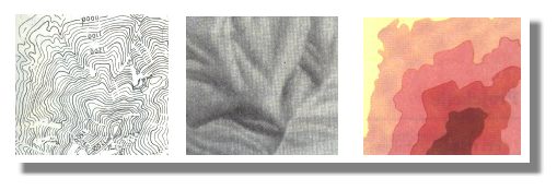 Relief prikazujemo s pomočjo višinskih črt (plastnic ali izohips), senčenja in barv.