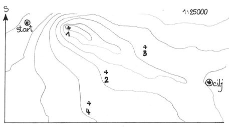 med njima. Predpostavi, da je karta risana v merilu 1 : 25000.