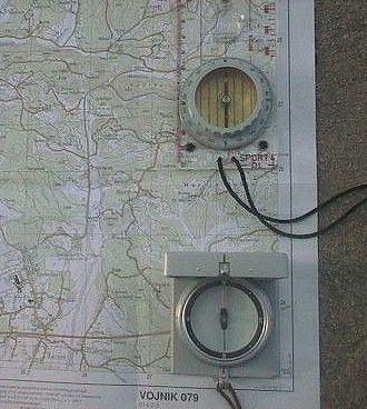 karto s kompasom obračamo, dokler se smeri severa na vetrovnici in igli ne pokrijeta