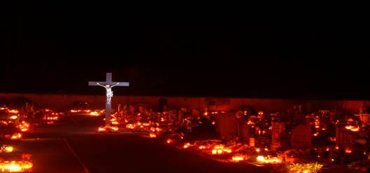 1.novembra obeležujemo dan mrtvih, ki je slovenski državni in krščanski praznik . Ob tem dnevu ljudje množično obiskujejo grobove in se s prižigom sveč poklonijo spominu na mrtve. Ko se znoči pa pokopališče pokaže svoj drugi obraz, obsijan s svetlobo sveč. Zato nekateri ljudje odidejo na pokopališče zvečer. Pravijo da med svečami najdejo mir. Spomin na svoje drage je spet jasen in občutek strahu, da pozabljamo na ljubljene osebe izpuhti iz naših misli.